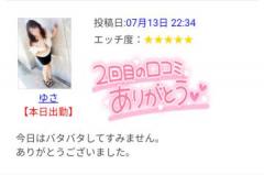 只今、出勤中です。今日は 15:00 〜 22:00 までの受付予定です。お誘いお待ちしてます。ゆさ
