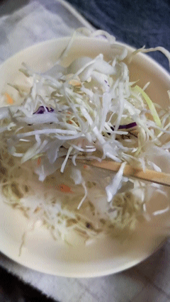 キャベツの千切り上手いでしょうスーパーで袋に入ってる千切りだけどねア・ソ・コの千切りは得意ゃでぇ〜スパスパ切っちゃう