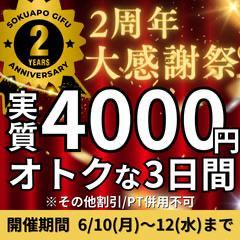[内容]〜イベント開催のお知らせ〜6月10日をもちまして即アポ奥さん岐阜店が2周年を迎えさせて頂きますこうして無事に2周年を迎えられるのも お客様のおかげでございます感謝申し上げます【内容】 ◆全コース2,000円割り+10分無料延長 その他割引、ポイント併用不可 【対象店舗】 ◆岐阜店 【期間】 ◆6/10(月)〜6/12(水) 是非ご利用下さいね