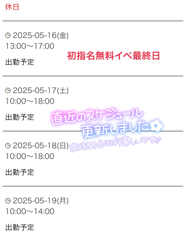 今日はジメジメして変な天気ですねさて、本日イベント最終日ですお得に遊べますのでまだの方はぜひご利用ください本日13時から出勤します久々なのでお手柔らかにお願いしますきとみ