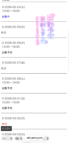 みなさんおはようございます本日も19時までお店にいます岐阜、愛知などどこへでも向かいますよ遠方でのご予約でもお気軽にお問い合わせください岐南付近のホテル、岐阜市のアルティアまでなら10分くらいで行けますよー!お時間合いましたらご予約お待ちしておりますきとみ