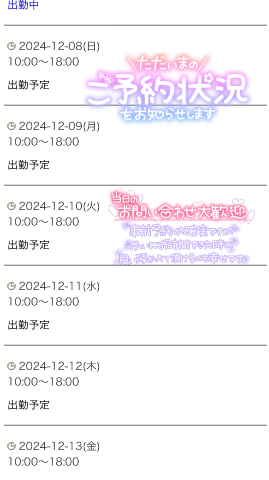 皆様こんにちは肌寒いですね来週のスケジュール更新させていただきましたので、ご確認ください次回のご予定今日 18時まで出勤予定明日 10時〜18時 出勤予定9日〜13日 10時〜18時 出勤予定今のところ全日空きございますお時間のあいているお兄様いらっしゃいましたらご予約お待ちしてますきとみ