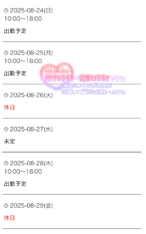 来週の出勤予定確定しましたのでお知らせいたします25日は午前中のみの時短かお休みいただくかも?来月からはリクエストのみの出勤予定ですきとみ