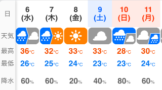 日中は、晴れ時々曇りで、今日も猛暑日になる予報です。さぁ、週の真ん中水曜日、本日も頑張りましょう自分へのご褒美というのもたまに用意するのも良いことだと思います素敵な1日をお過ごしください本日もお付き合いくださいね今日も一日安全運転で行ってらしゃい