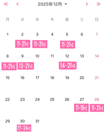 12月の予定が決まったよん基本11時〜21時受付です相変わらず少なめの出勤だけどいっぱいイチャイチャしたいなあ素敵な時間を共有できますように(〜岐阜店浜松店在籍〜)(岐阜店出勤の時は名古屋方面も行けます)るるの自己PR差し入れで嬉しい物紅茶花伝のミルクティーレモンティー、ジャスミン茶ワサビ味のおかしタラタラしてんじゃね〜よ笑トリスハイボール(果物アレルギーなので果物系はNGです)もちろん差し入れなしでも嬉しいですよく聞かれるので書いてますっ?